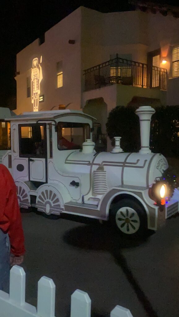 Stepping outside the lobby was like stepping into the North Pole—but cooler. The Fairmont Scottsdale Princess transforms into a full-blown Christmas village with glowing lights wrapped around trees, rooftops, and walkways in every direction. It felt like stepping straight into a holiday dream.